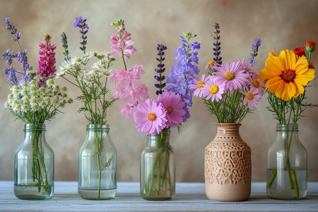 Les vases en verre sont intemporels et très polyvalents. Ils permettent de mettre en valeur les tiges et les feuilles des fleurs, ce qui peut créer un effet visuel saisissant. Vous pouvez opter pour des vases transparents ou colorés, selon l’effet recherché.