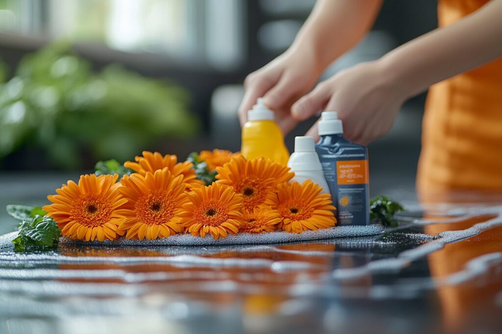 Préférez toujours des produits comportant des ingrédients naturels tels que des huiles essentielles, du savon pur ou encore de l’acide citrique. Ces composants naturels sont tout aussi efficaces pour nettoyer et désinfecter sans risques.